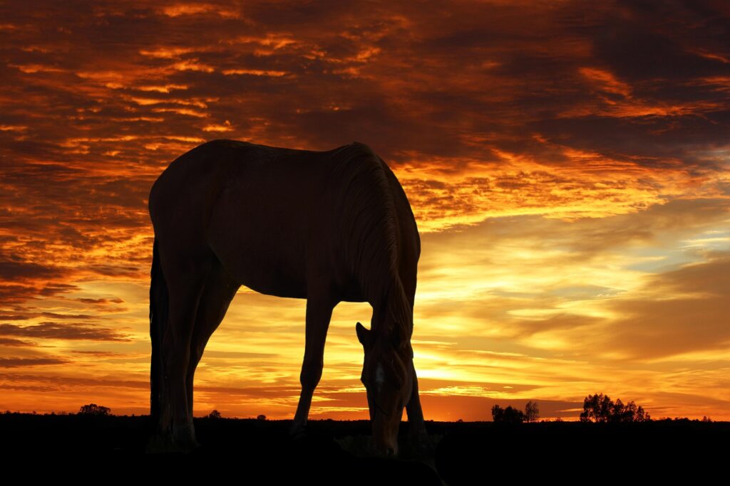 一日の終わり、ゆったりと休む馬。穏やかな空気が周囲に広がります。
